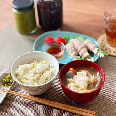 お持ち帰りの塩麹と醤油麹を使えば、おうちでレッスンの復習ができます(ただし、完成までには一週間から10日かかります)。おうちの定番調味料としていただければ嬉しいです。