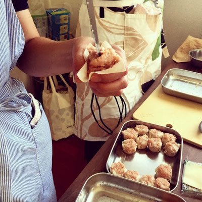 今日は、一緒に参加するお子様なしの大人なレッスン。小さな子がいるのも和むけれど、大人だけでワイワイおしゃべりしながらの料理も落ち着いていていいもの。というか、子どもがいても、大人だけでも、私、いつもどちらも楽しませてもらってますね♡